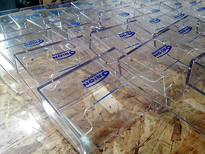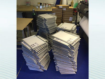 Olvin alumiinikehyksiä painettiin paljon. Kehyksen alaprofiiliin painettiin Olvin logo. Kuvassa yksi setti kuivumassa. Jos tarvitset ison määrän alumiinikehyksiä, ota yhteyttä.